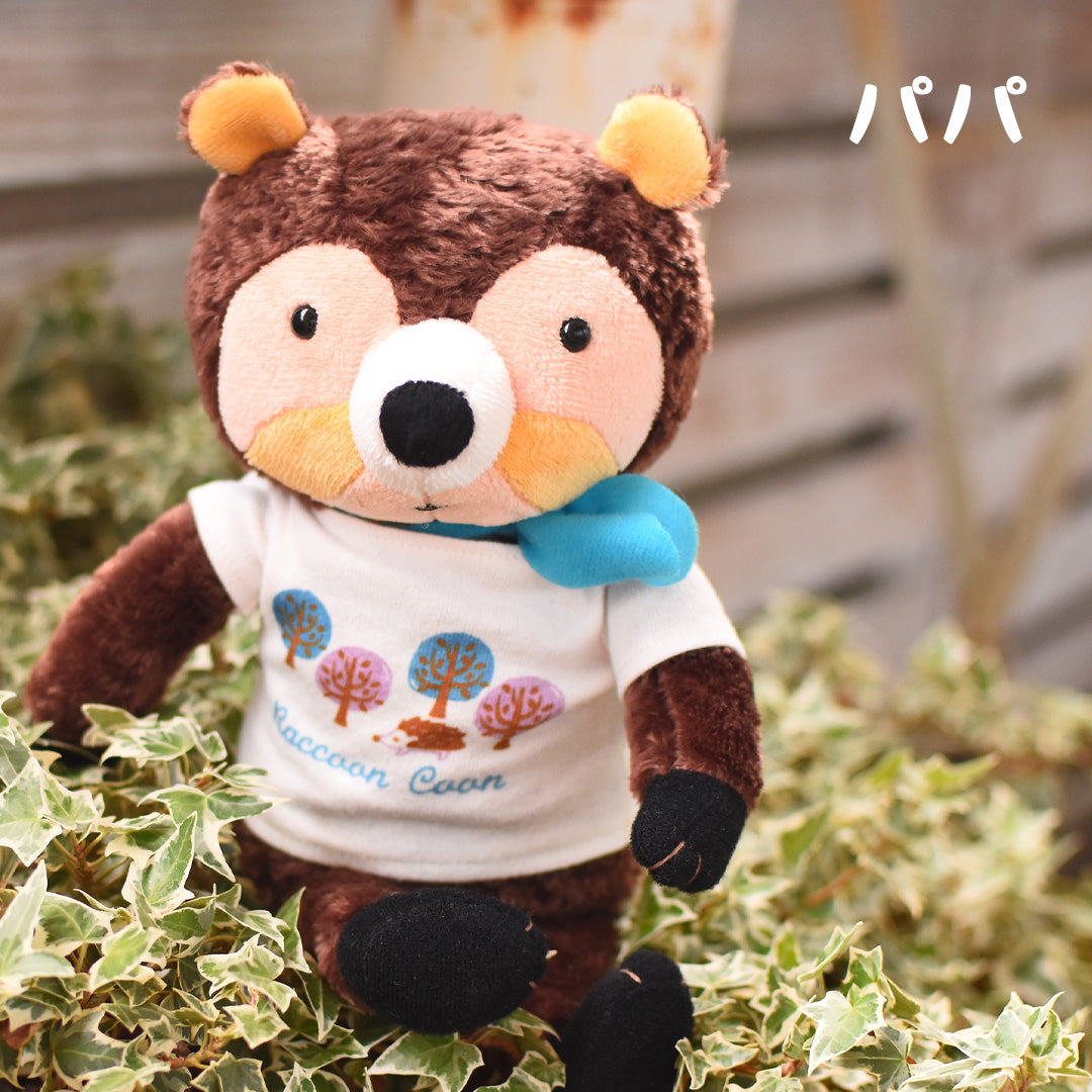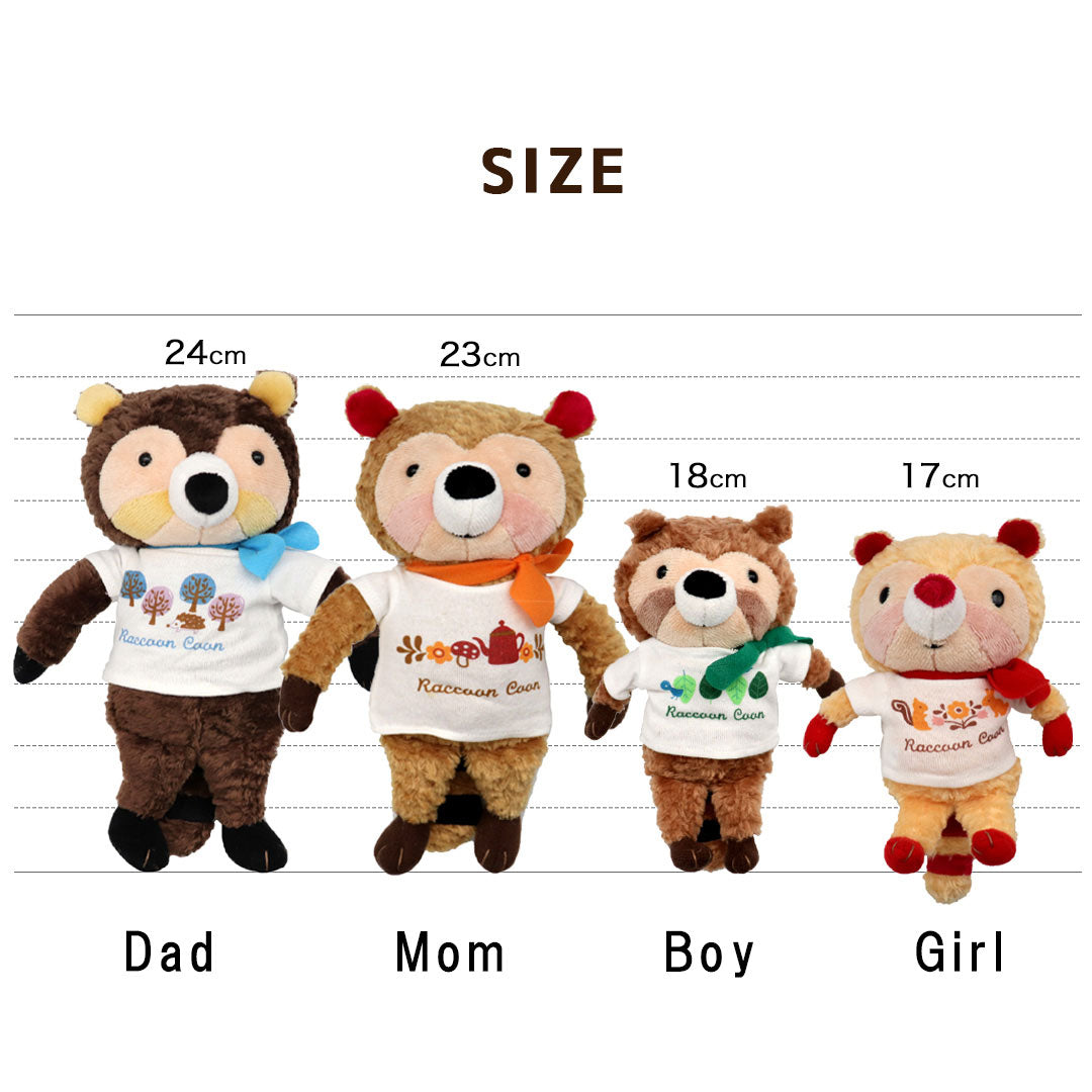 Conoce a la adorable familia de mapache de Deep in the Forest: mamá, papá, niña y niño. Cada uno tiene una cola esponjosa y de gran tamaño y una bufanda linda y colorida para un encanto adicional. Perfecto como regalo o para decorar su espacio con amigos del bosque.